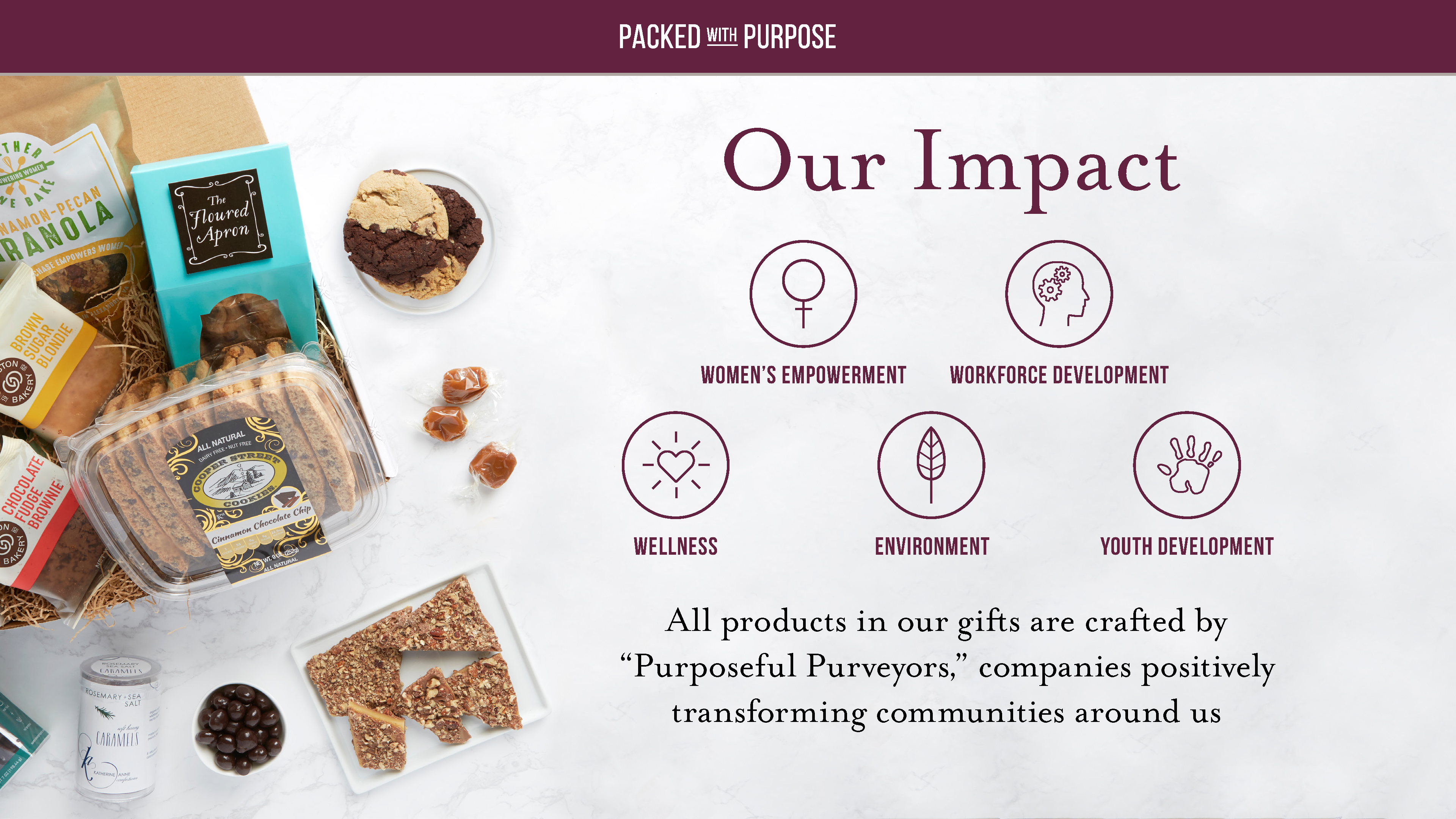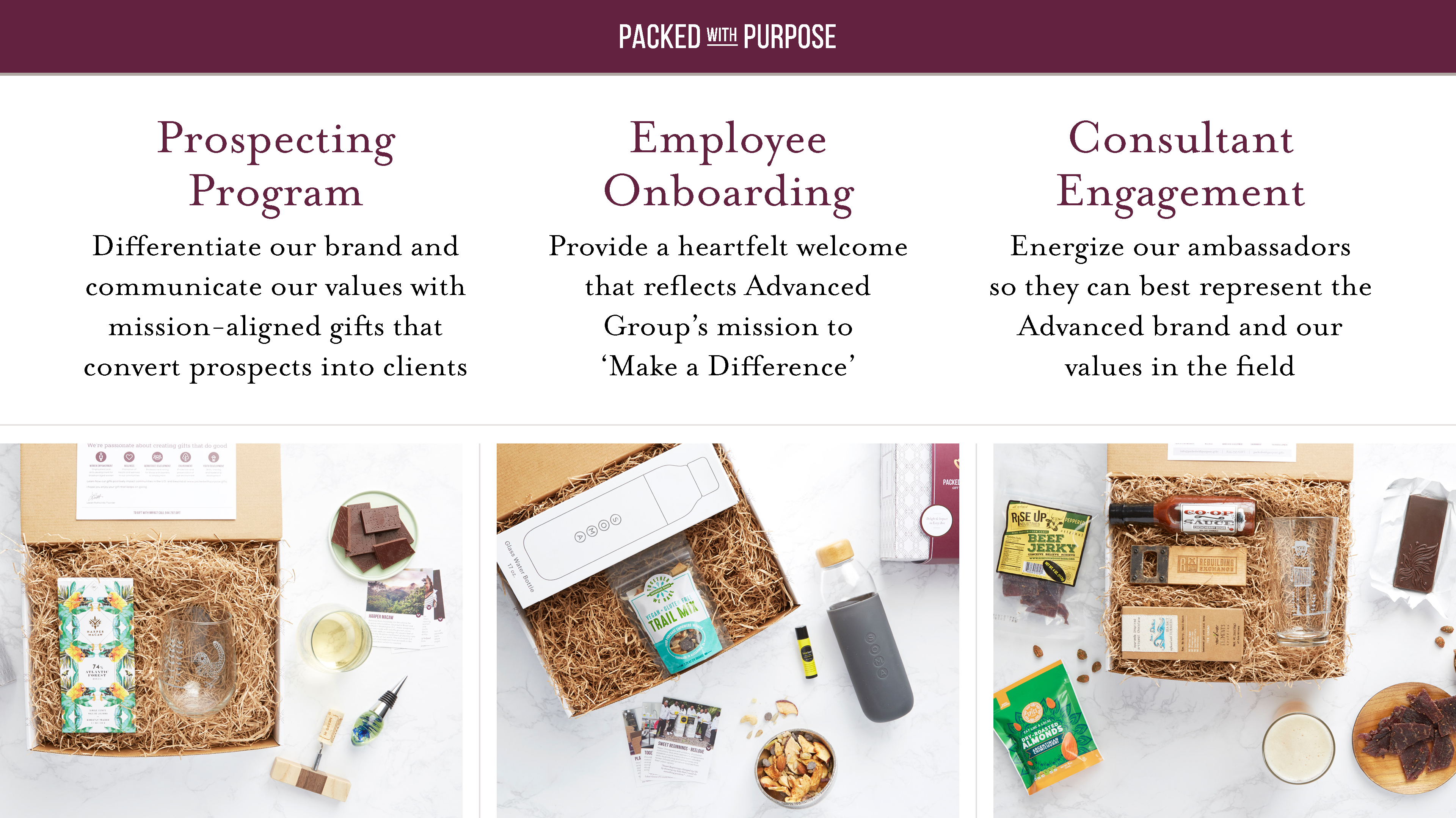 Slide presentation. Layout, photo editing, typography. (Client: Packed With Purpose)