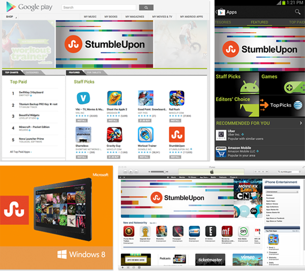 My work has been featured in the Google Play Store, the Android App Store, Microsoft ads, and the Apple iTunes store. (Client: StumbleUpon)