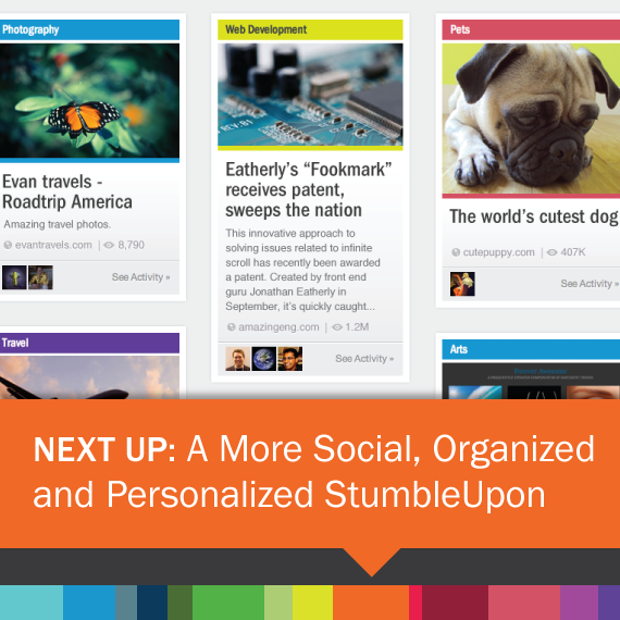 Above are just a few of many pieces I've designed for StumbleUpon. I was initially hired to be a photo editor at the company but it was very clear that the design and marketing teams needed help so I stepped in and this became my primary role at the company. I worked on everything from email banners, blog images, social media account pages, swag like hoodies and pint glasses, to sell sheets, and product launch guides. Many of the photos that appeared in StumbleUpon collateral were photos taken from my personal work.