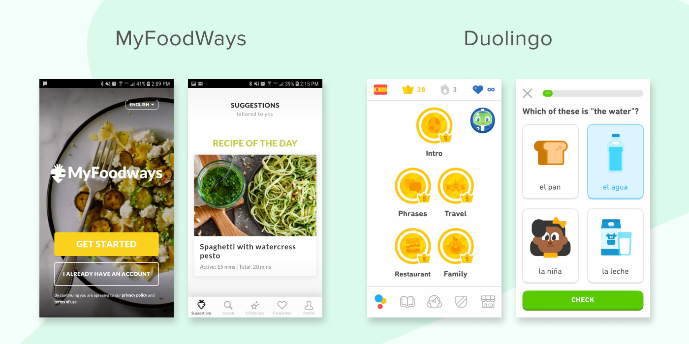 We conducted research on other food waste education resources like MyFoodWays as well as on how to learn via an app like Duolingo.
