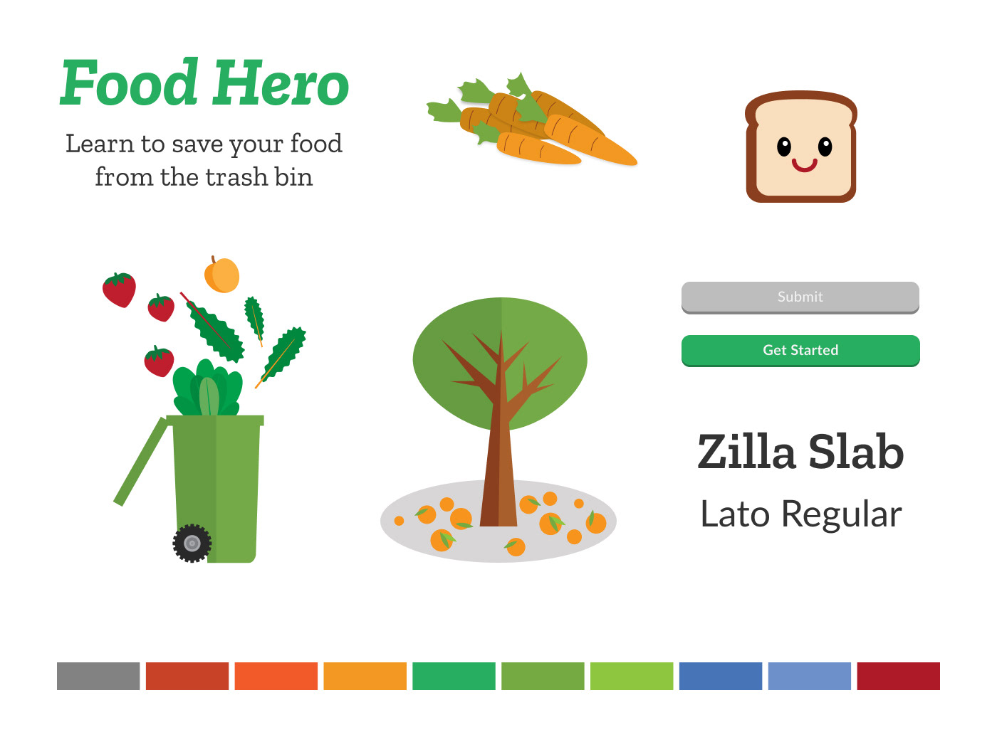Our colors represent all of the vibrant colors you’d find at a farmer’s market and reflect our brand personality which is optimistic, authentic, welcoming, and down to earth. The typefaces are chosen for their legibility and to enhance a sense of practicality while still being fun. There’s a slight nod to a school textbook aesthetic as well.